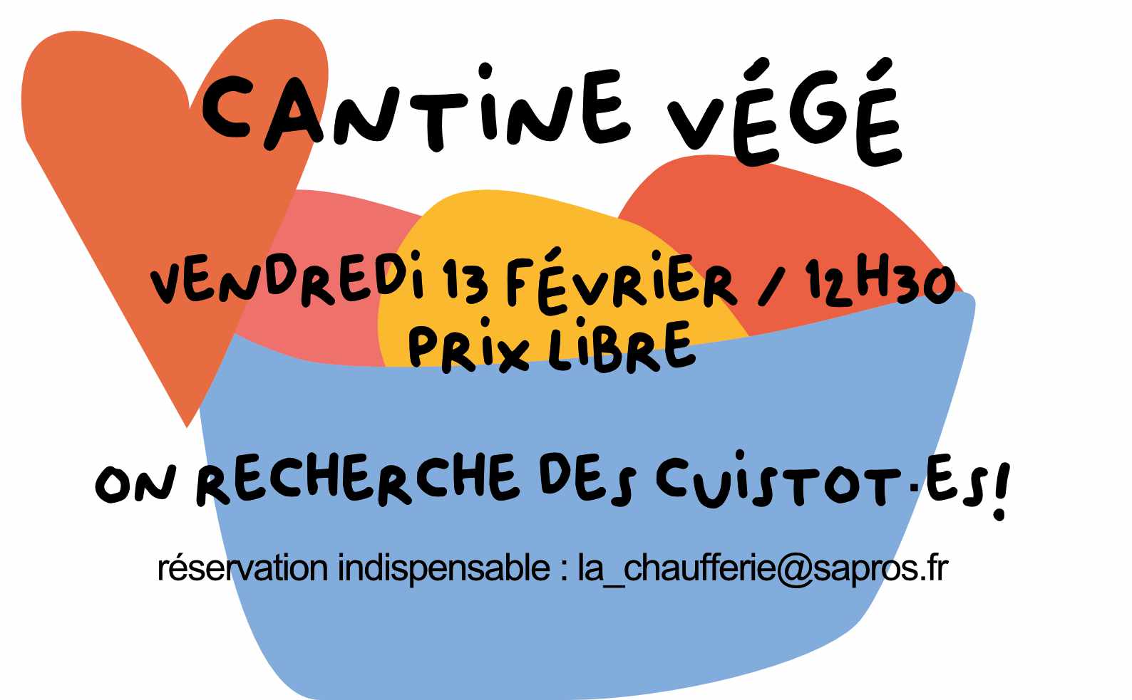 La cantine du mois aura lieu vendredi 13 février à partir de 12h30. Venez partager un repas végétarien, et si vous avez le temps, participer à la cuisine à partir de 9h30. Comme papoter c'est toujours mieux autour d'un repas qui frémit, n'hésitez pas à passer nous donner un coup de main, ou encore mieux, […]