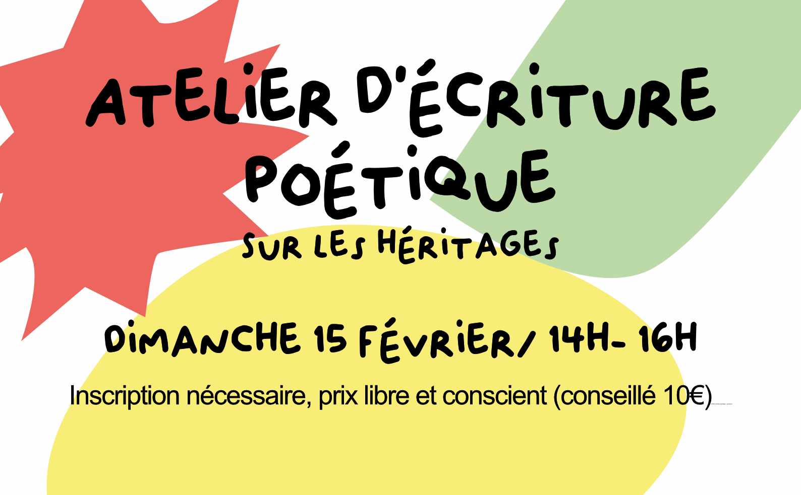 Atelier 1 : s’abriter, agir-maison Ce cycle d’ateliers d’écriture poétique sera un espace pour explorer à travers les mots ce dont on hérite et ce qu’on transmet - récits vécus ou légendés, images volatiles, vibrations souterraines, mémoire de peaux. Pour ce premier atelier, je vous propose de suivre le mouvement de l'abri, avec toute la […]