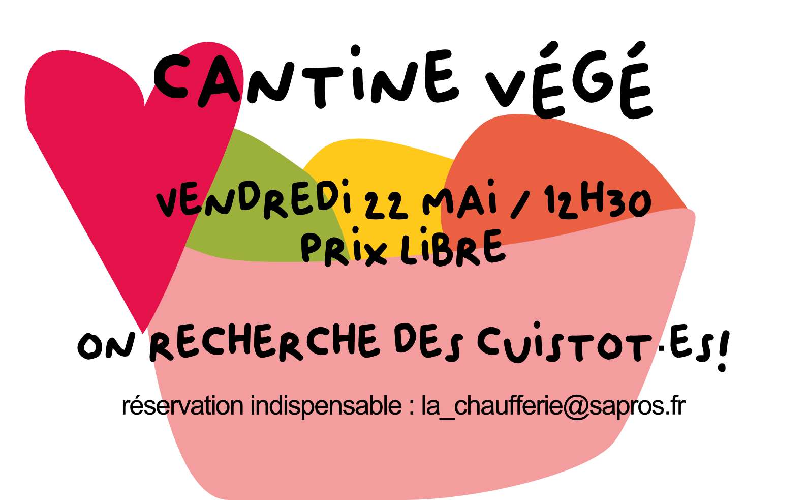 La cantine du mois aura lieu vendredi 22 mai à partir de 12h30. Venez partager un repas végétarien, et si vous avez le temps, participer à la cuisine à partir de 9h30. Comme papoter c'est toujours mieux autour d'un repas qui frémit, n'hésitez pas à passer nous donner un coup de main, ou encore mieux, […]