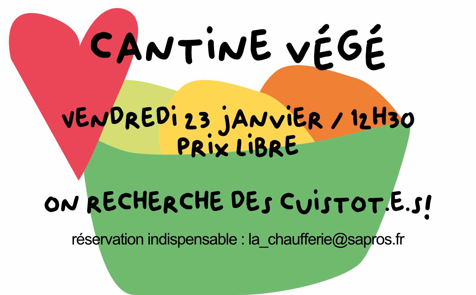 La cantine du mois aura lieu vendredi 23 janvier à partir de 12h30. Venez partager un repas végétarien, et si vous avez le temps, participer à la cuisine à partir […]