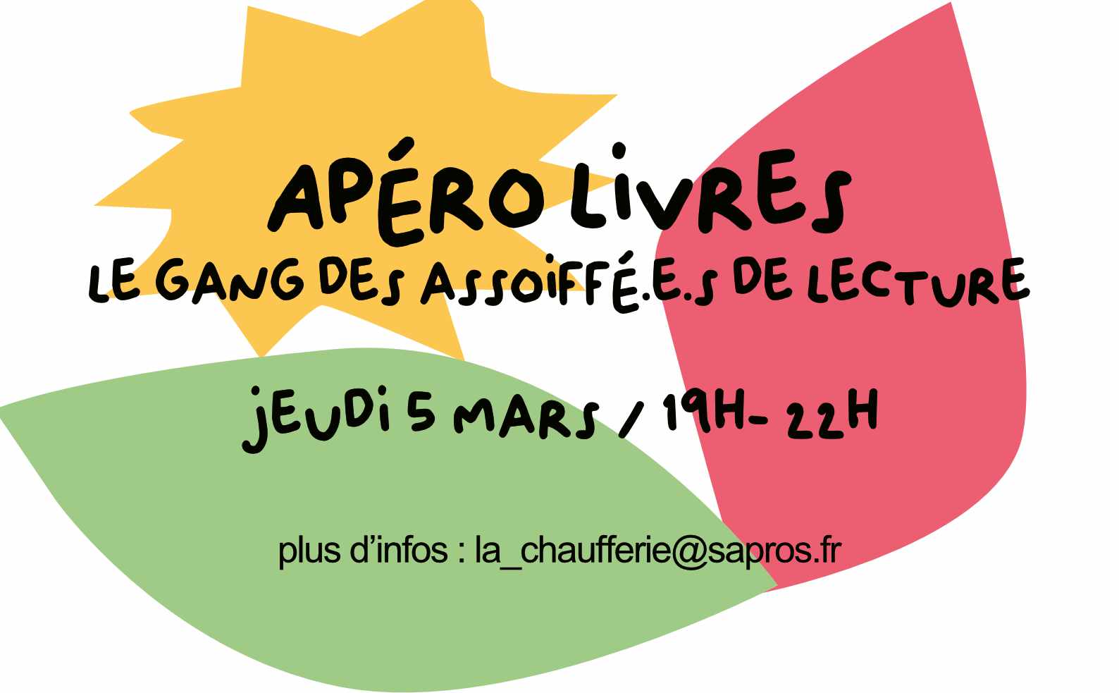 Les apéros-livres sont le rendez-vous mensuel du gang des assoiffés de lecture. Le premier jeudi de chaque mois, venez partager une lecture sur une thématique, participer à une lecture commune, échanger vos découvertes culturelles. Ce mois-ci, rendez-vous jeudi 5 mars à 19h avec mon livre drôle.