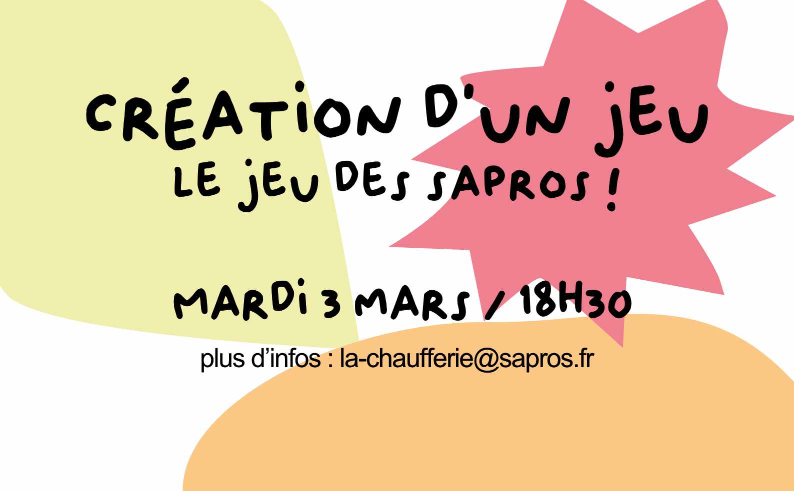 On est en train de créer un jeu de société sur le Sapros! On a commencé à esquisser il ya plusieurs mois, et on vous invite à continuer cette aventure le mardi 3 mars à 18h30. Pas besoin de s’y connaitre ou d'avoir participé aux premières rencontres. Atelier gratuit et ouvert à tous.tes ! 🎲