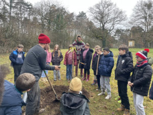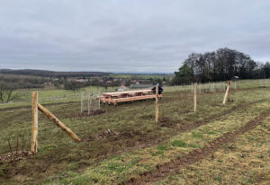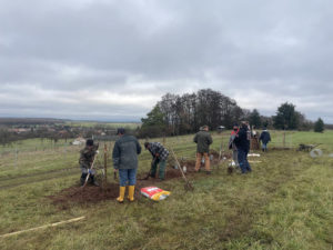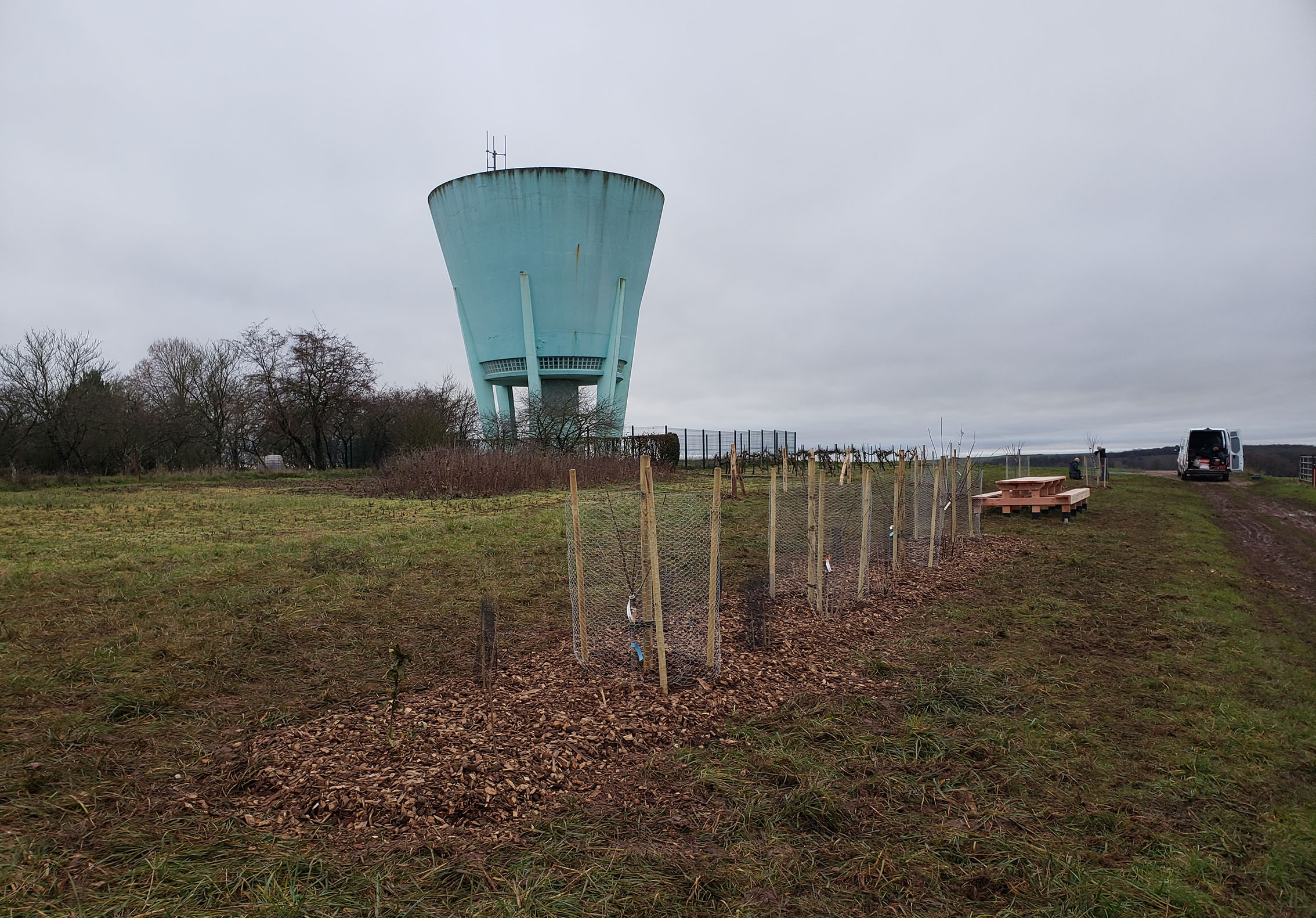 Ai pied du chateau d'eau, en surplomb du village, plantation d'un verger avec les habitants du village et construction d'une grande table de pique-nique où déguster le vin chaud.