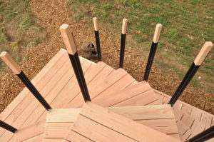 de Frémeréville. Un lieu stratégique pour faire une pause, pour renouer avec l’histoire du lieu, mais aussi avec la forêt. Le chantier a été réalisé essentiellement avec les billes de bois coupé sur le site, pendant une semaine avec les jeune d'un IME.
